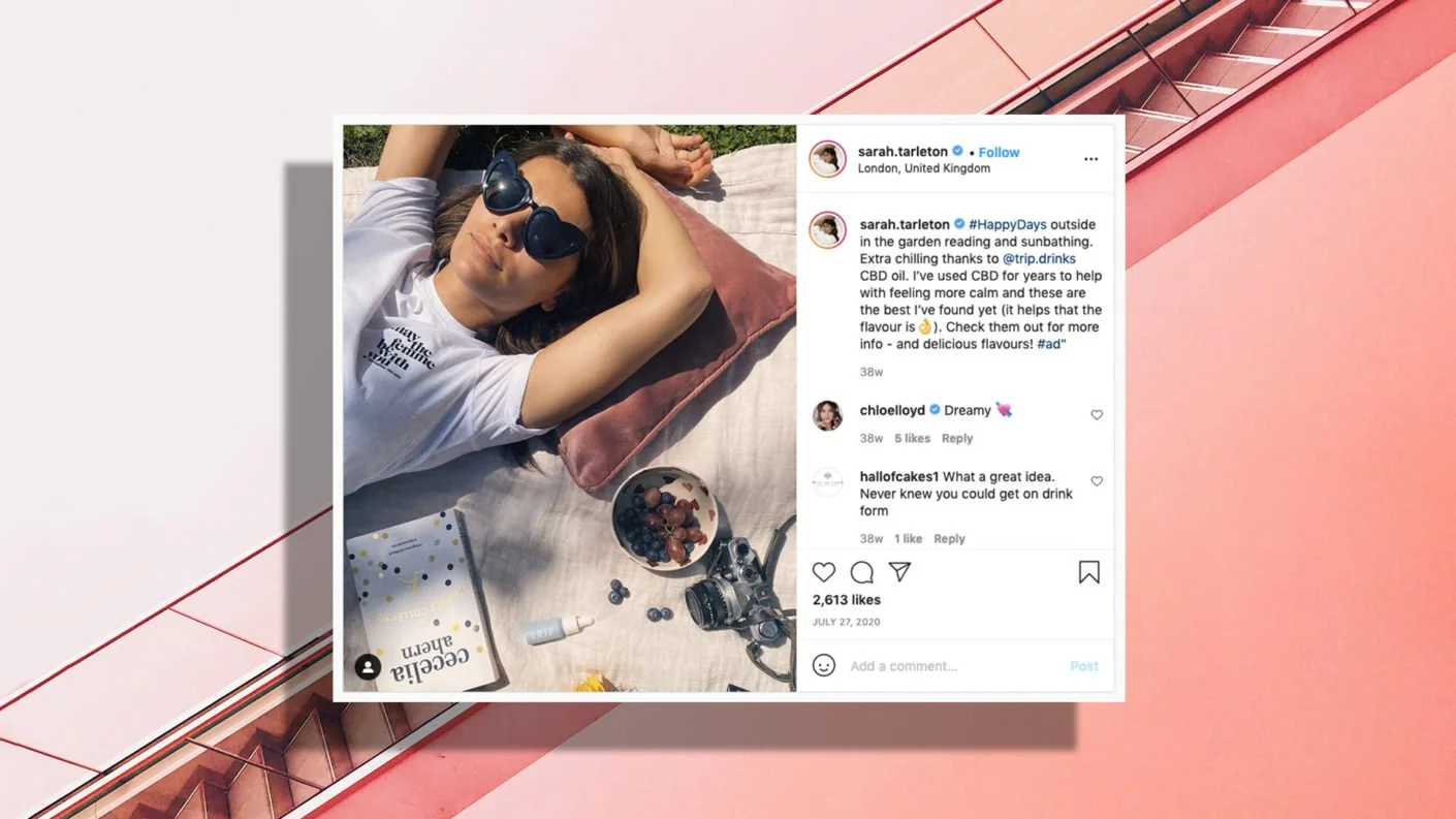 In January 2020, we started working with delicious new, CBD-infused soft drink brand TRIP Drinks on an influencer campaign that raised awareness for their unique product offering, aligning it to like-minded people and their followings.